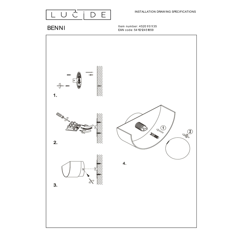 LUCIDE – BENNI PASTEL BLUE KINKIET PÓŁKSIĘŻYC Z KULKĄ