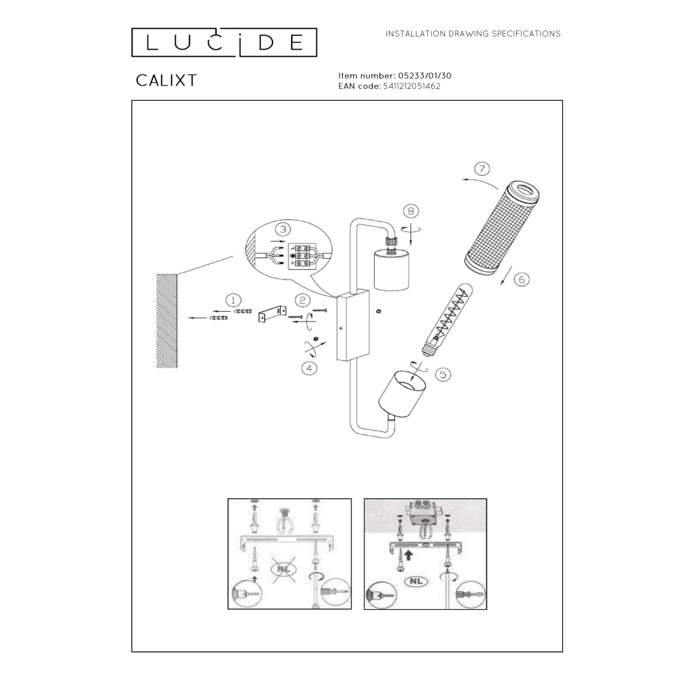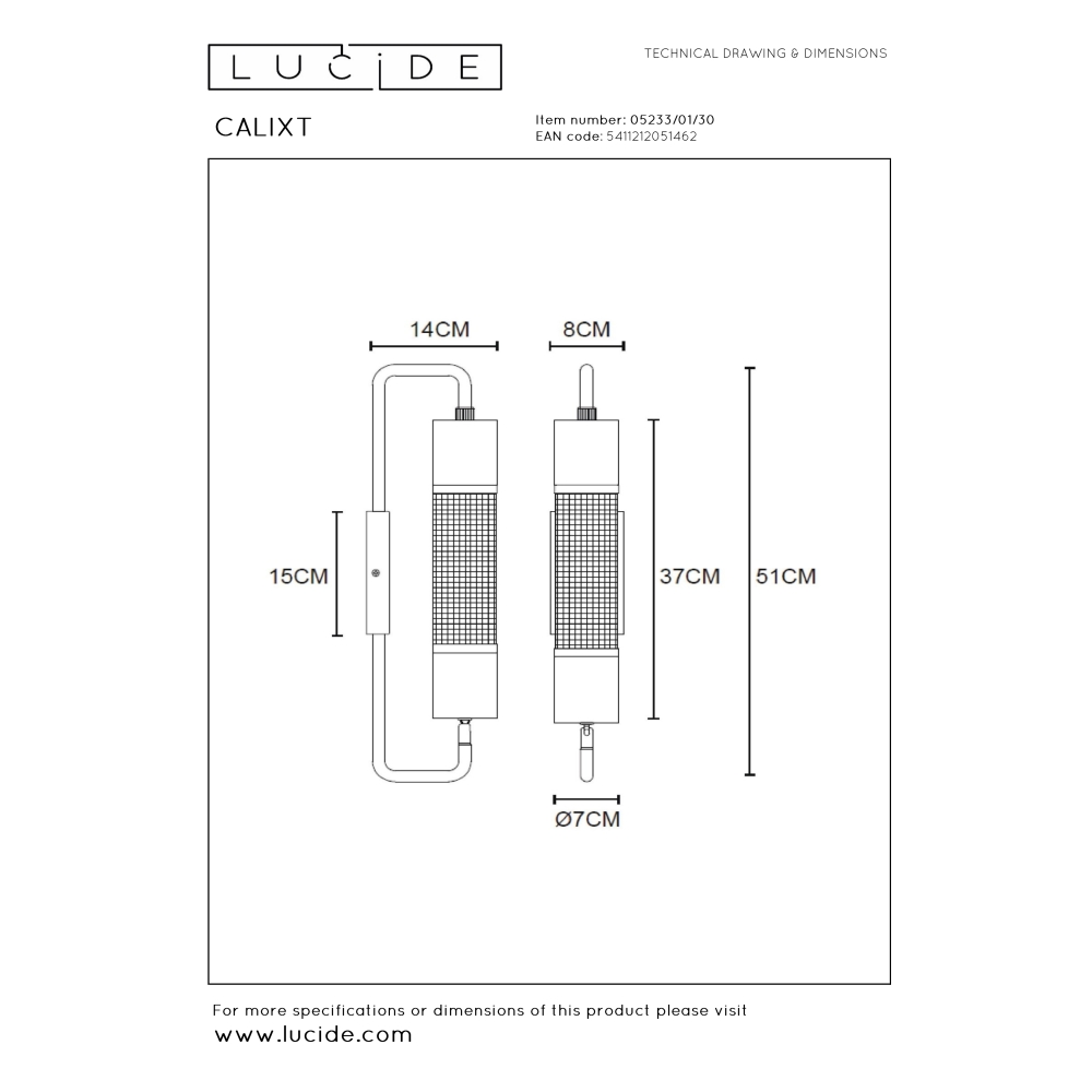 LUCIDE – CALIXT KINKIET LOFT Z SIATKĄ