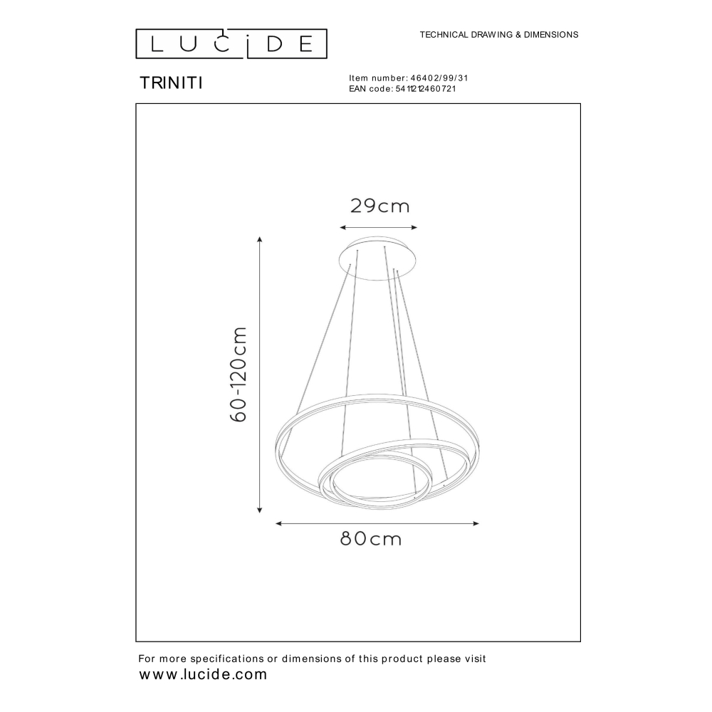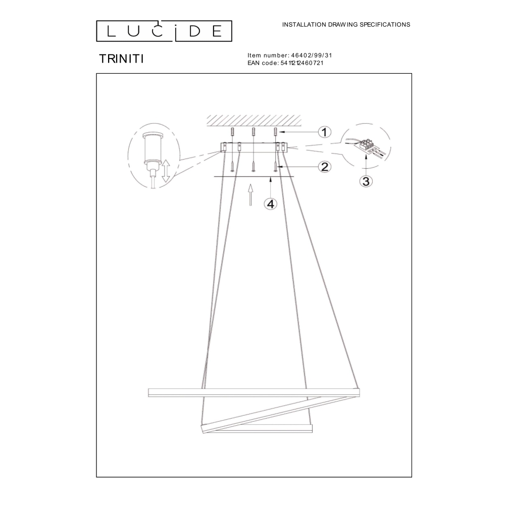 Lampa wisząca TRINITI została wykonana z wysokiej jakości aluminium i trwałego tworzywa,