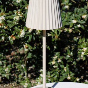 LUCIDE – JUSTINE CREAM DOTYKOWA LAMPA MOBILNA USB RYFLOWANY KLOSZ
